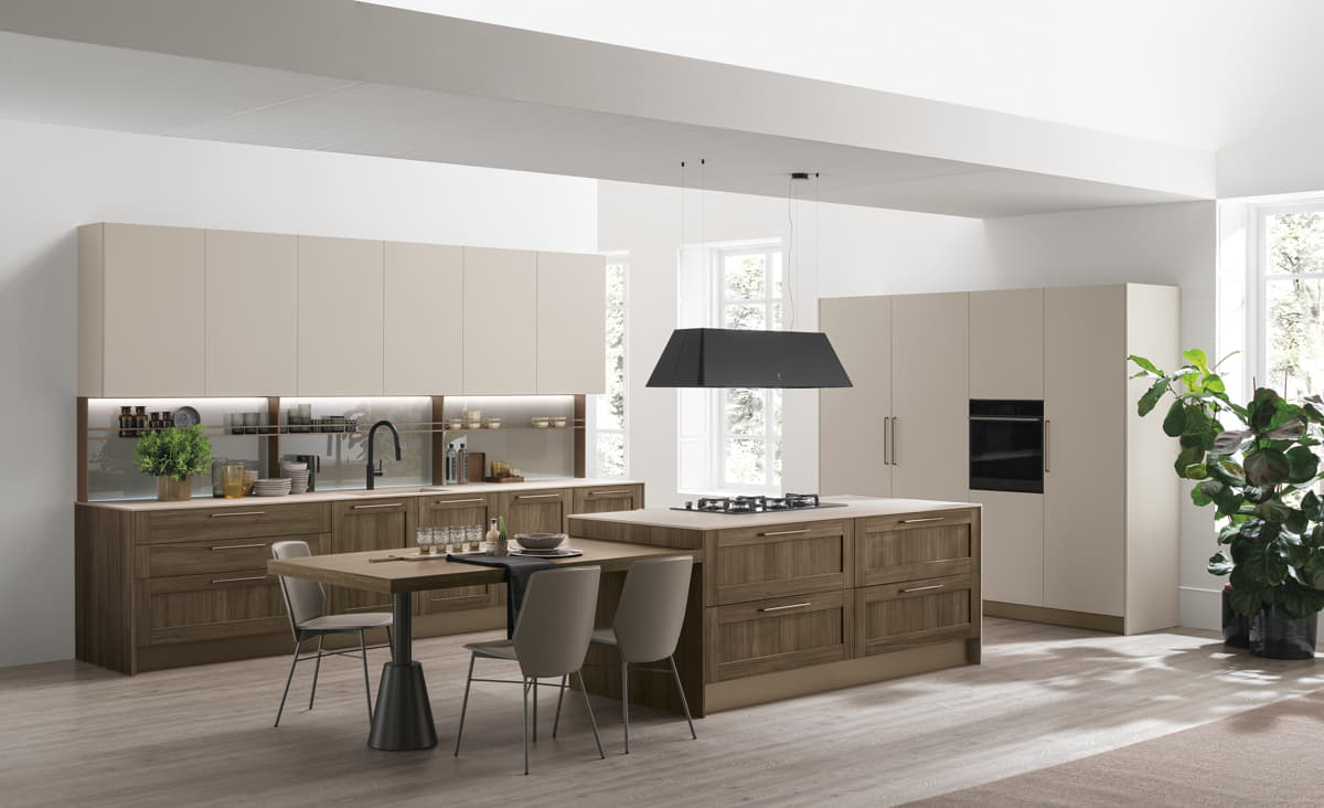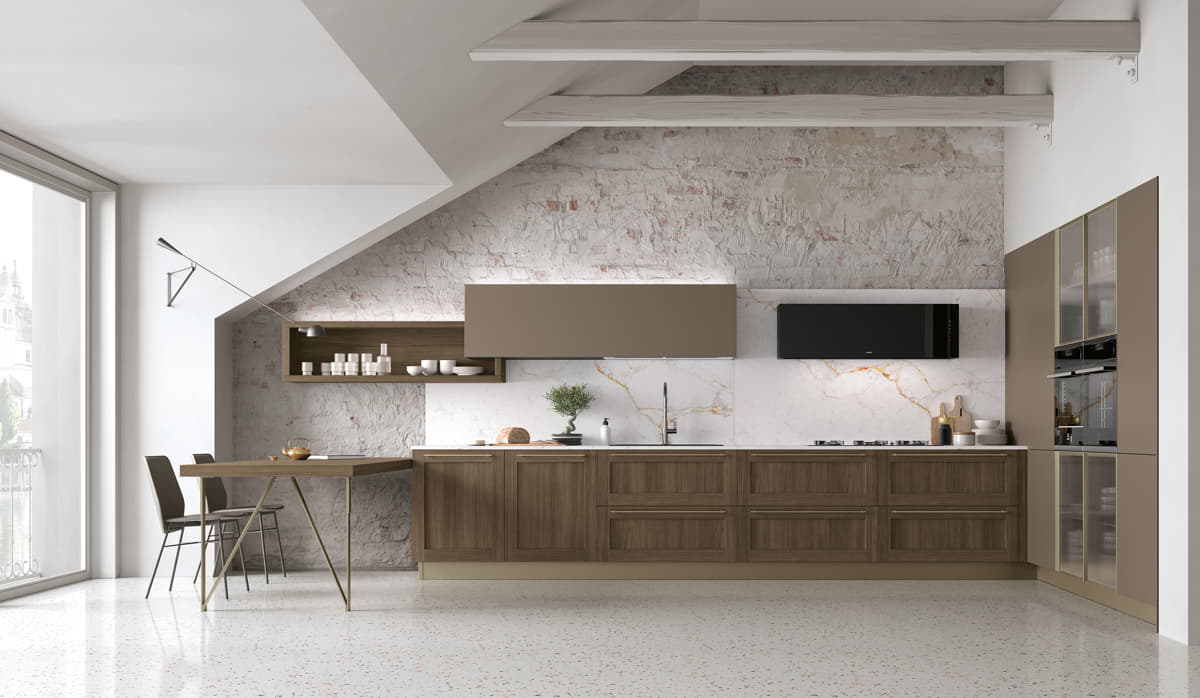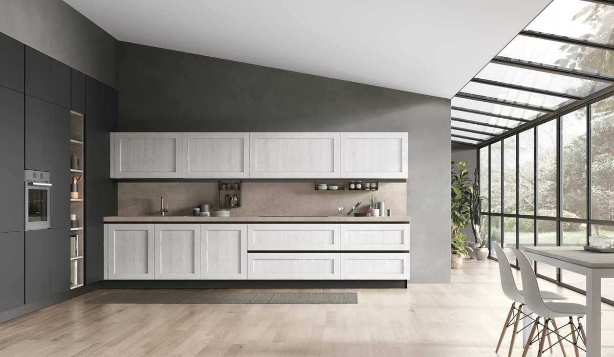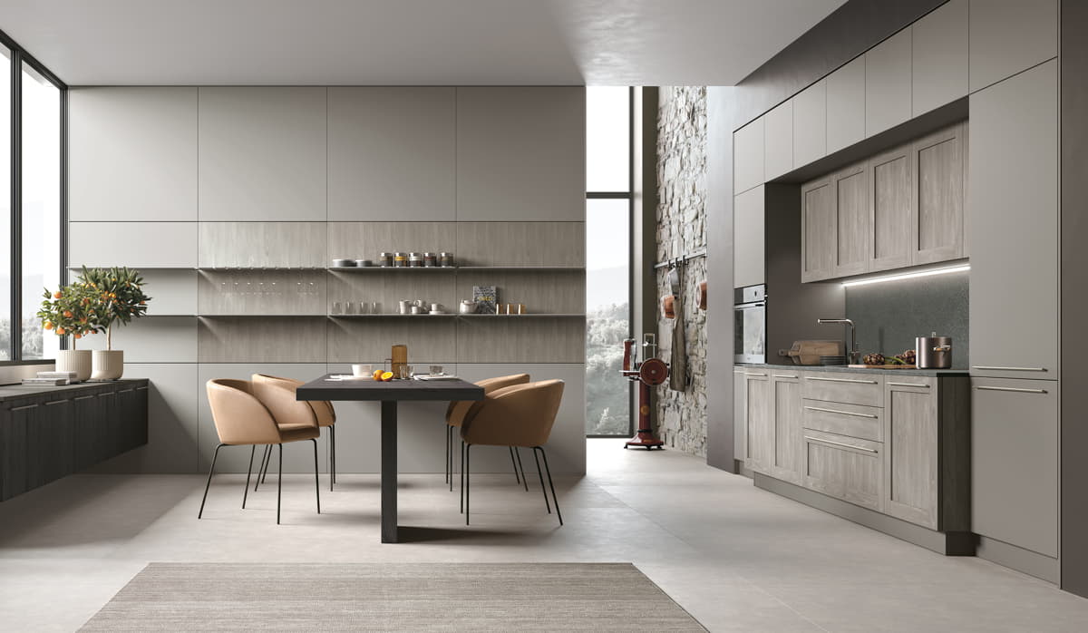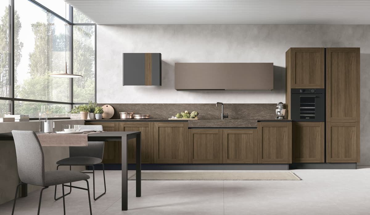 Caratteristica distintiva del modello è l’anta a telaio con bugna, che nel modello City assume uno stile creativo e non convenzionale. Un’estetica solida e decisa, una cucina capace di offrire sensazioni tattili e visive grazie alle sue finiture materiche. Interpretabile in diversi mood, City riesce a richiamare il passato attualizzandolo attraverso una lettura inconsueta e accarezza i richiami alla più recente tradizione, traducendoli in progetti capaci di attraversare il tempo, definiti da un fascino che rimane inalterato nonostante il variare delle mode.